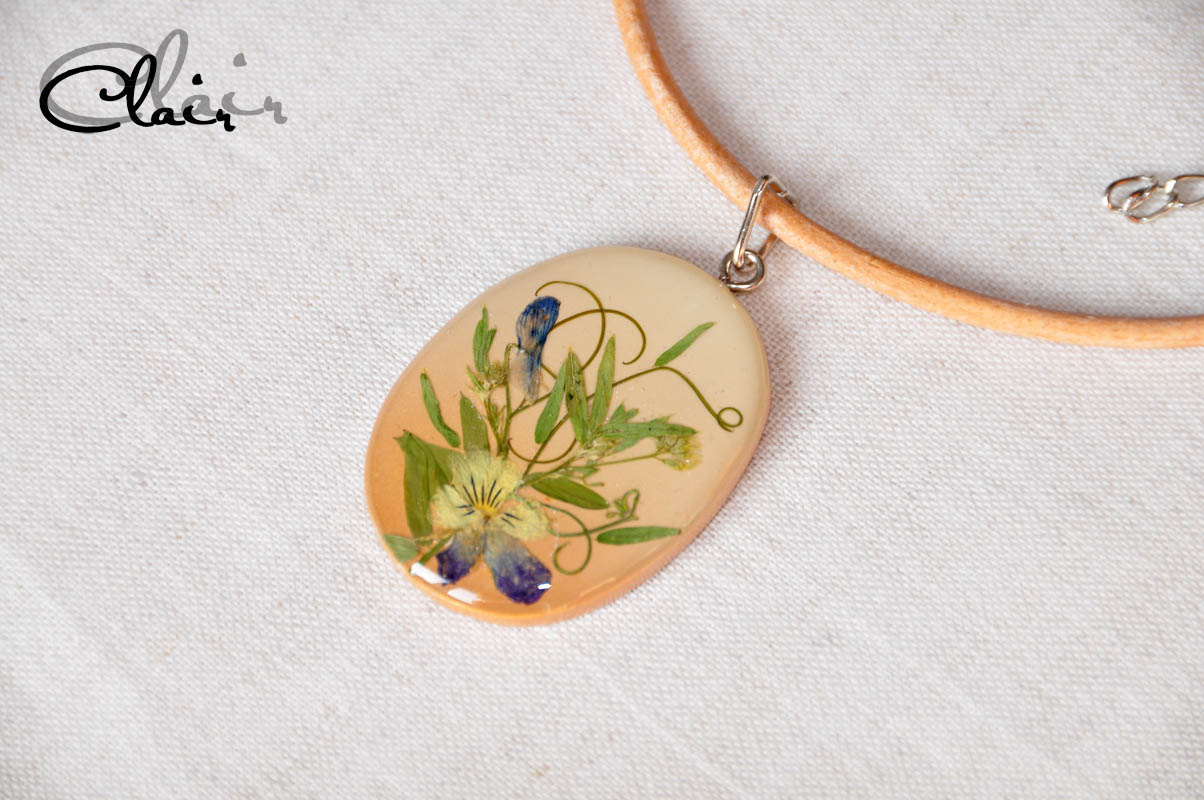 А вот еще кулончики с разными сухими травками и цветочками, залитыми эпоксидкой. Основы кулонов вылеплены из полимерной глины. На таких основах у меня уже были подобные кулоны, менее сложные - см. здесь.